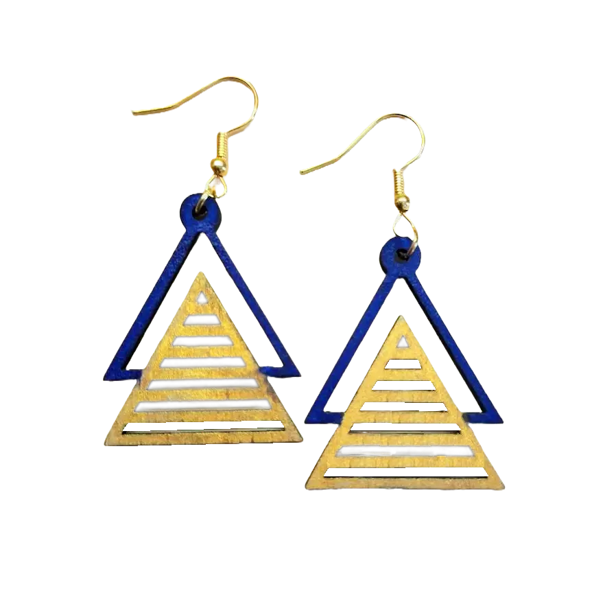 Orecchini in legno disegno geometrico triangolare dipinti a mano
